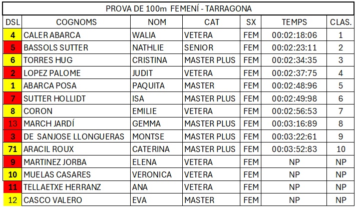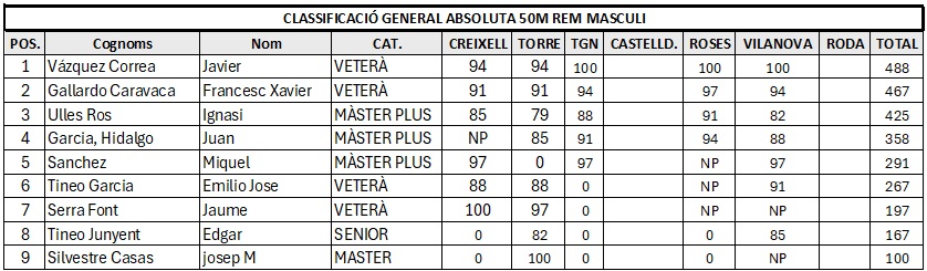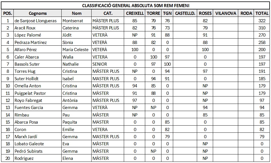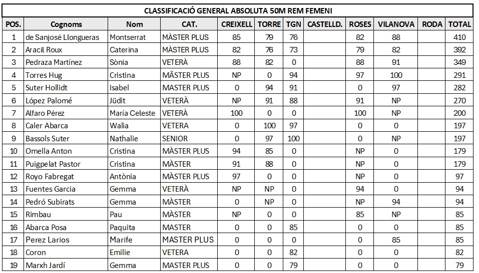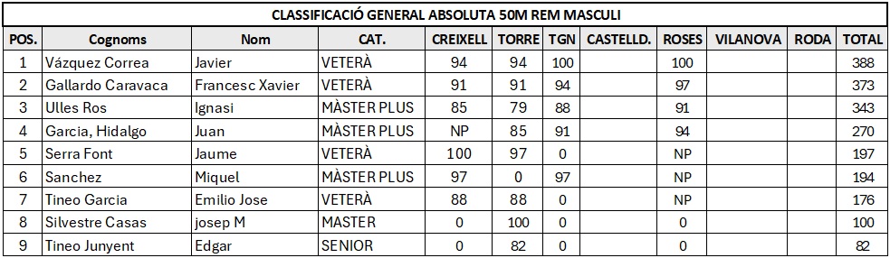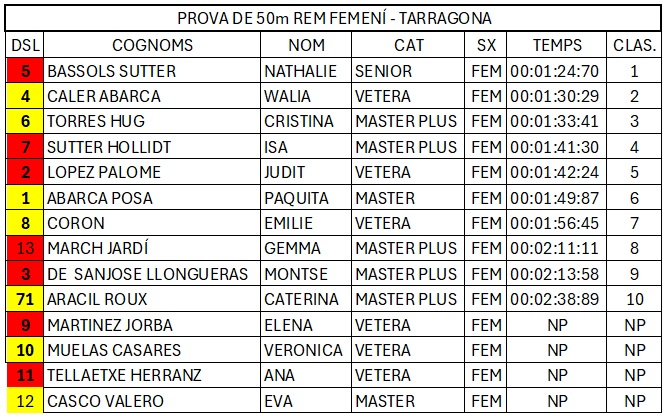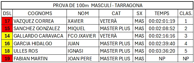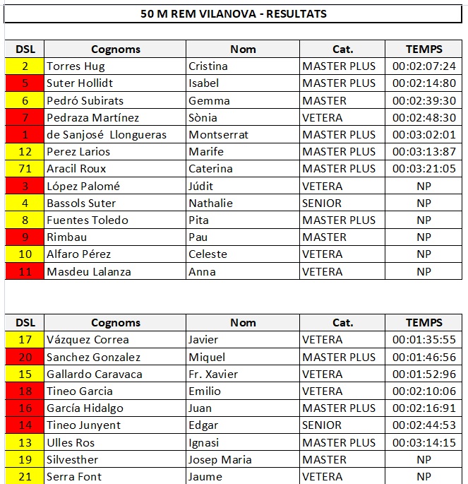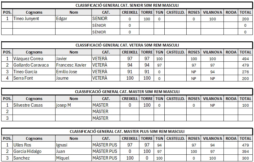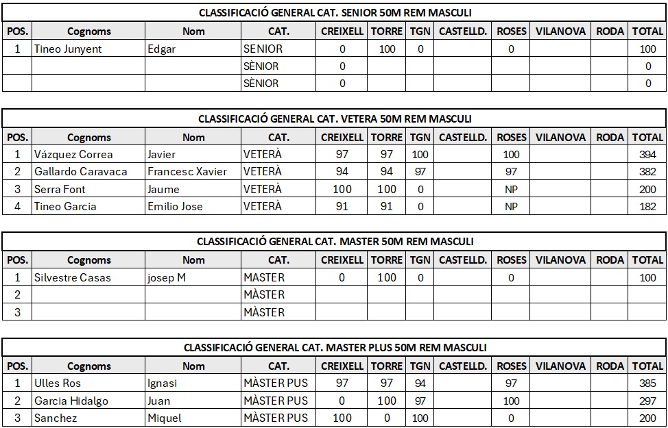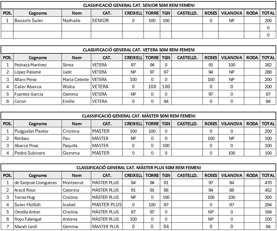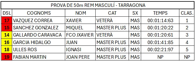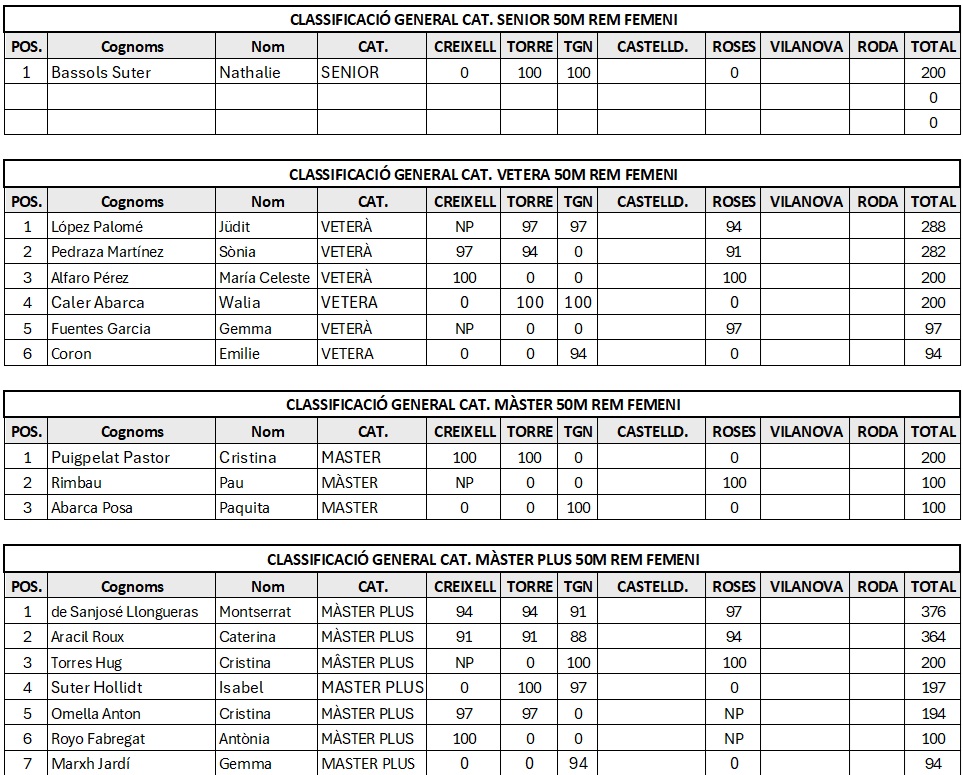 • 10:00 a 10:30 aprox. 50 m Individual amb Rem. Masculí i Femení