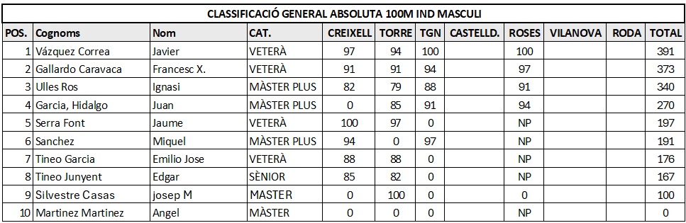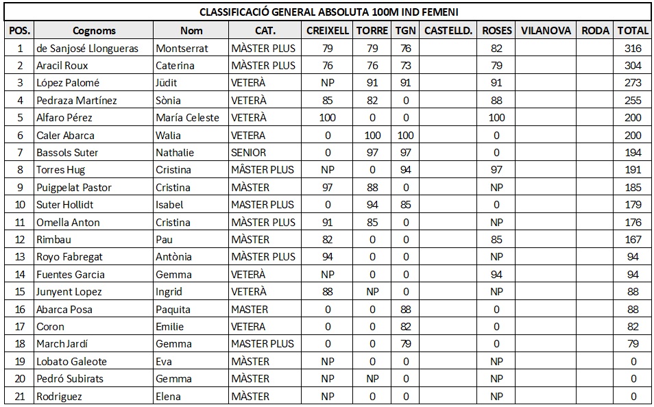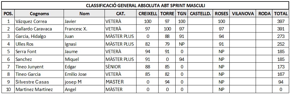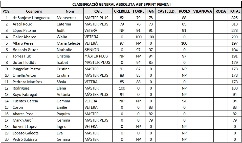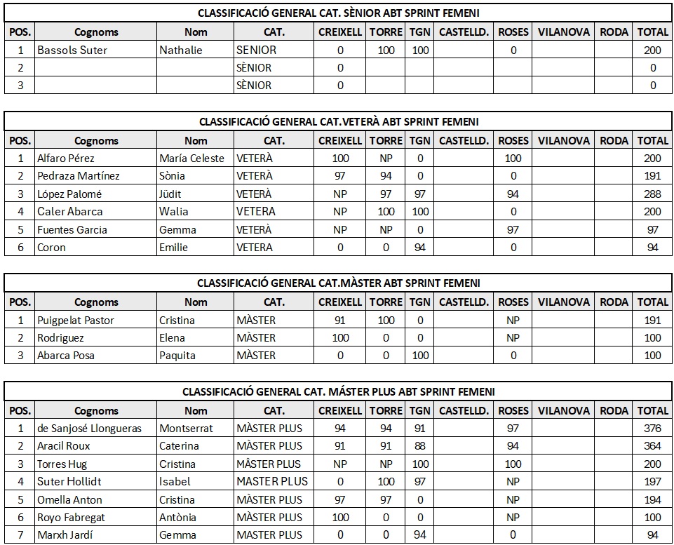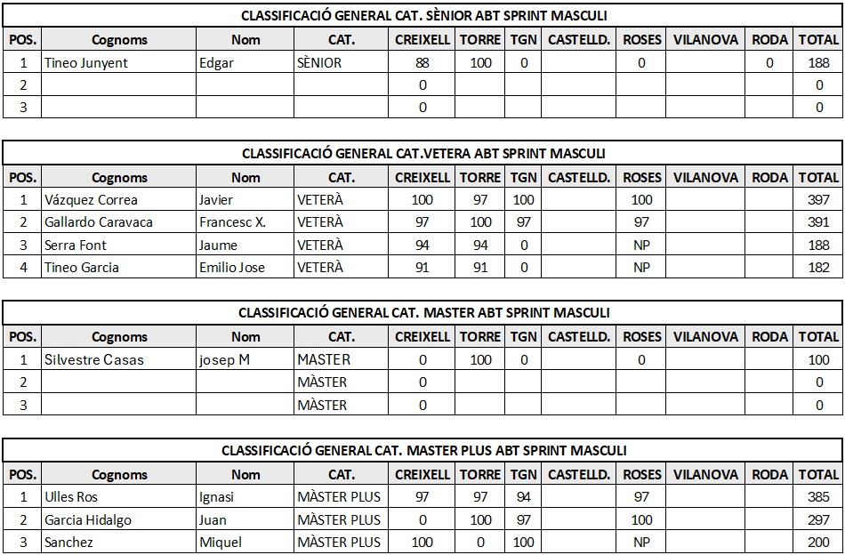 CLASSIFICACIÓ CATEGORIES PER PROVES