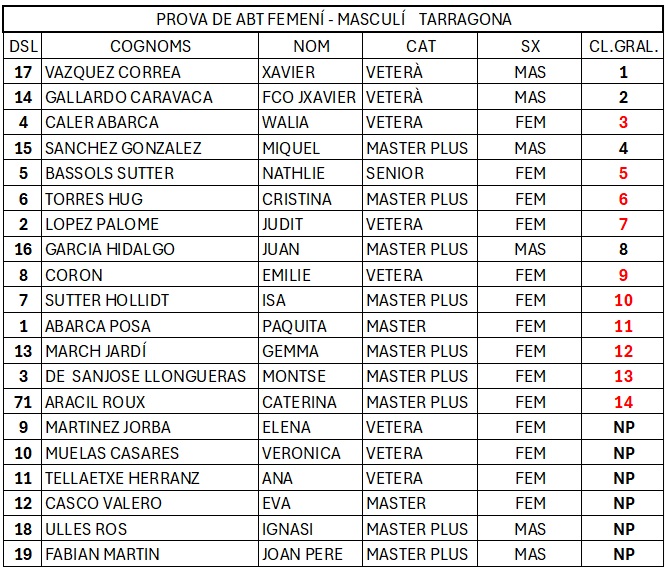 18 D'0CTUBRE 2025: TARRAGONA "PROVA REALITZADA"