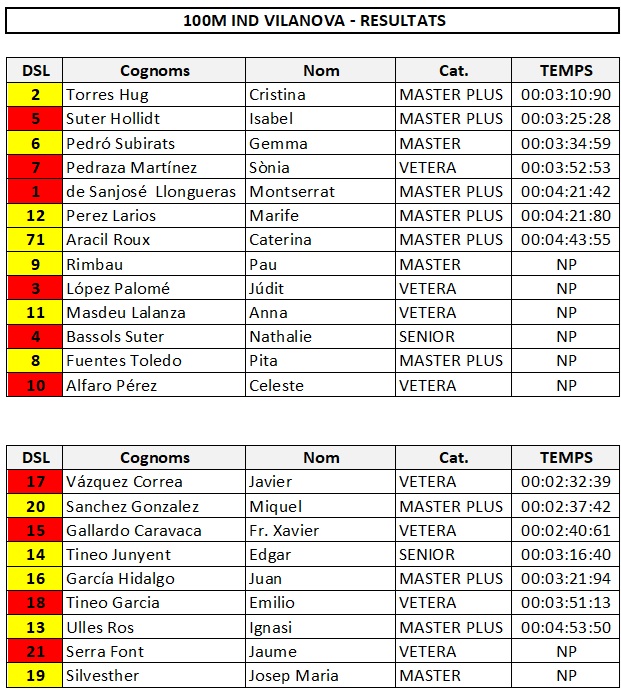 • 10:45 a 11:45 aprox. 100 m Individual a ma nua. Masculí i Femení