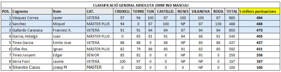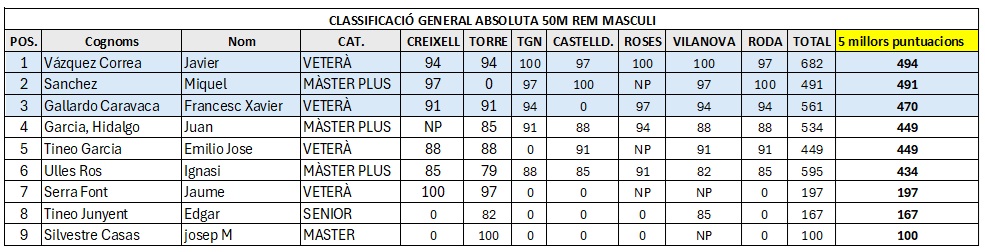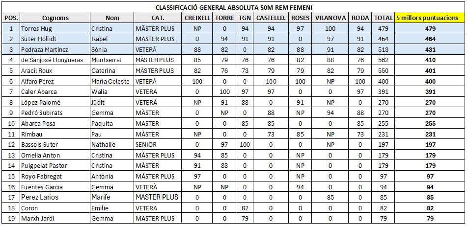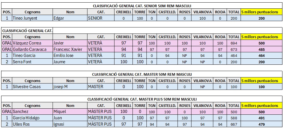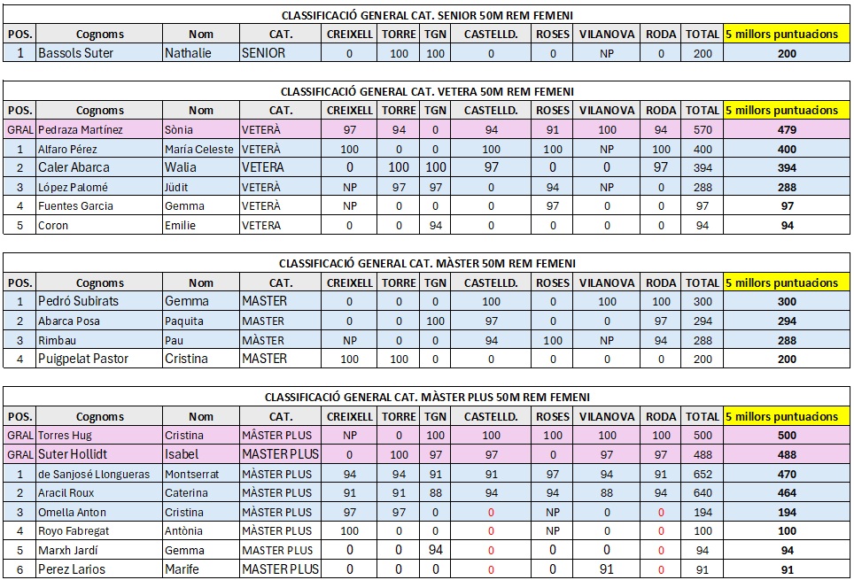 RESULTATS FINALS LLIGA D'HIVERN DE MARXA AQUÀTICA 2025