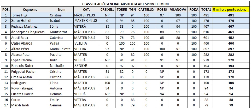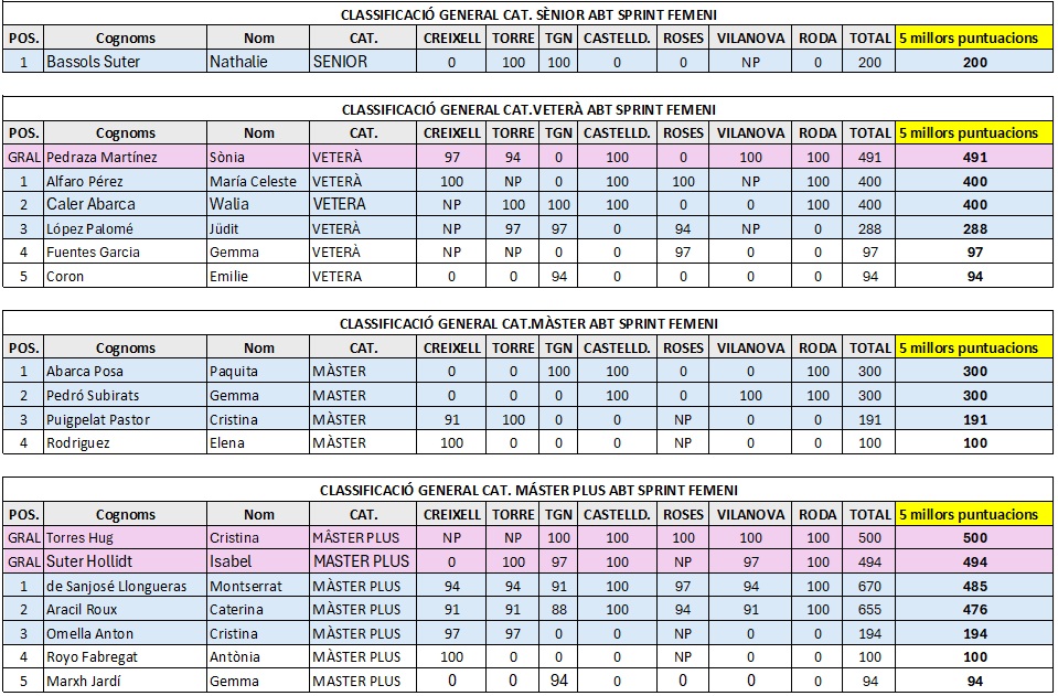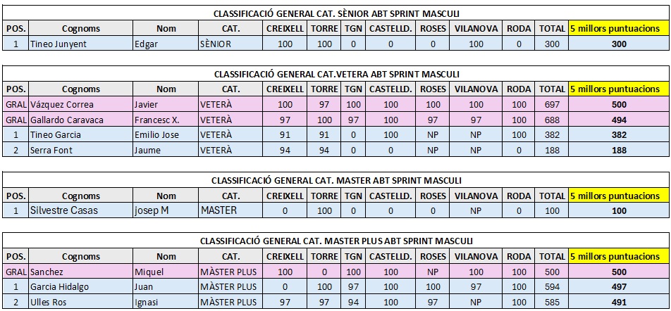 CLASSIFICACIÓ CATEGORIES PER PROVES